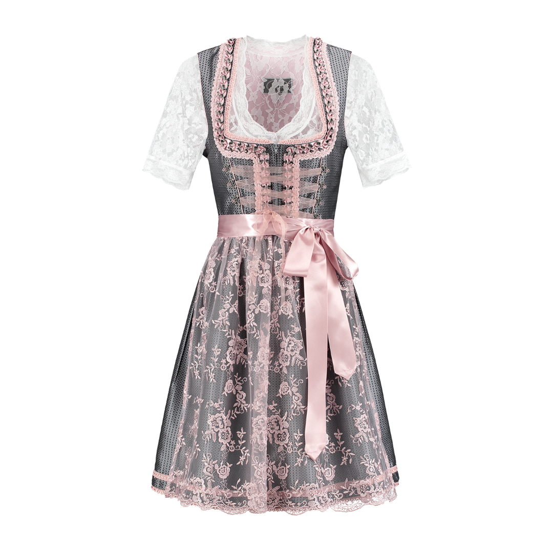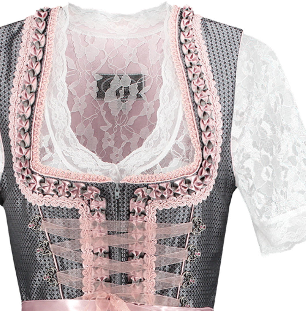 Dirndl, Oudzilver/oudrose. 2 Delig