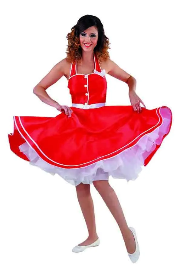Rock ‘N Roll jurk, rood, taft met riem