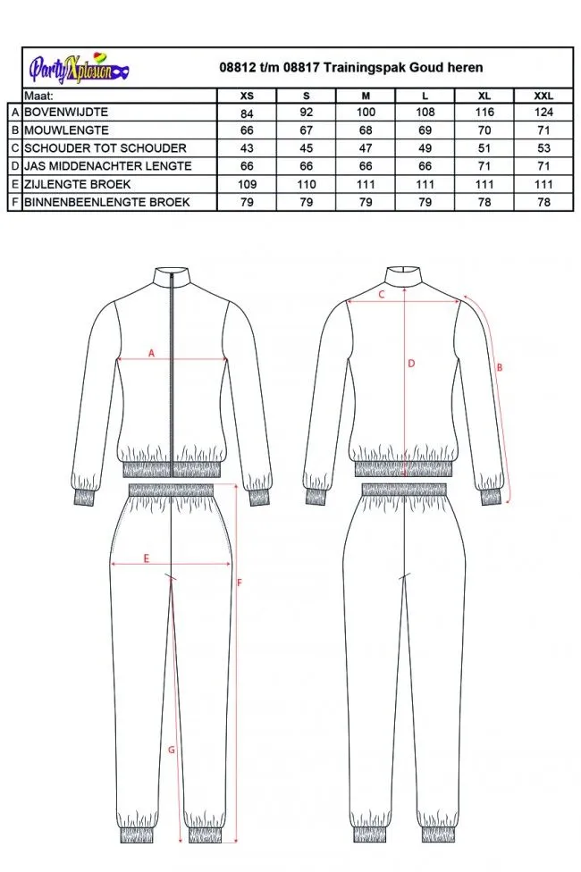Dit gouden heren trainingspak bevat: